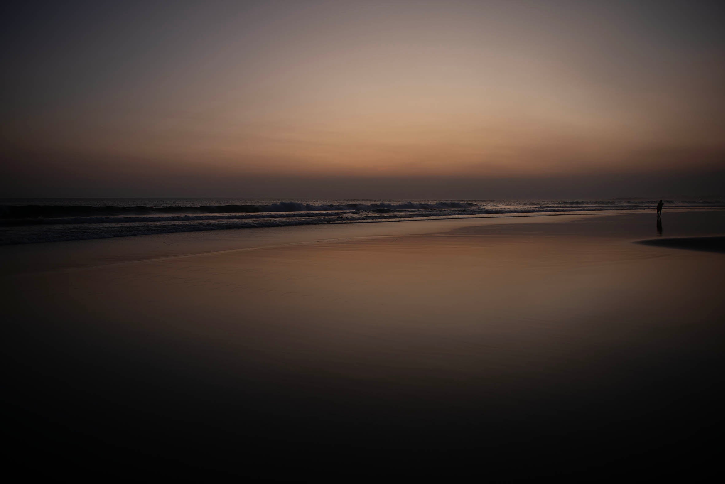A solitary figure stands against the full force of nature, poised before a powerful ocean at dusk — beautiful, raw, and unfiltered. This evocative artwork captures the quiet resilience of the human spirit amid vast elemental power, inviting reflection on strength, vulnerability, and the awe-inspiring scale of the natural world.